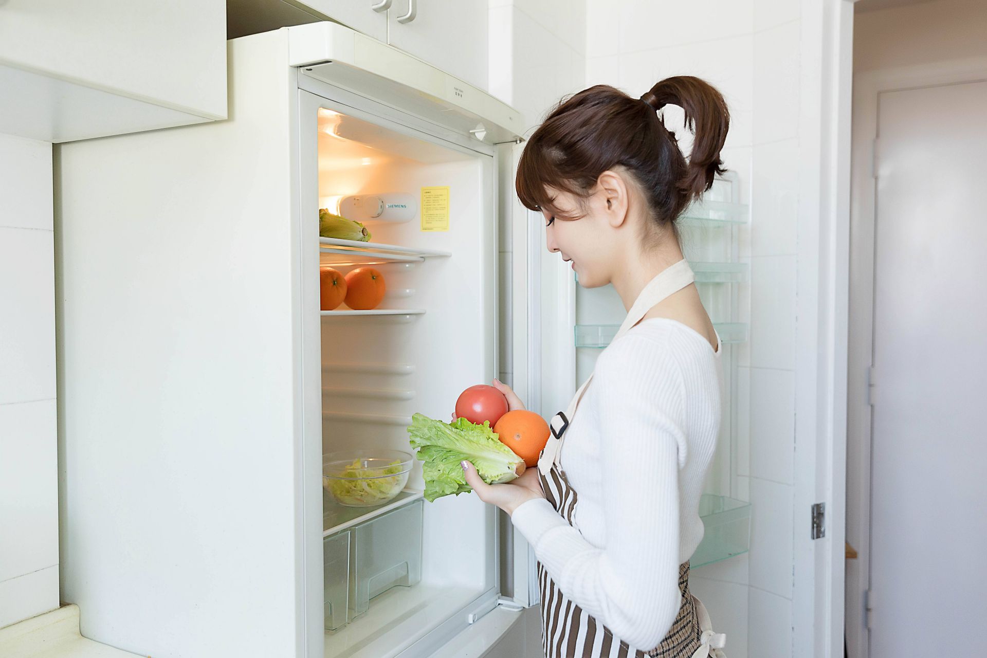 靠近底部的是保鮮抽屜,這些抽屜旨在使您的水果和蔬菜保持充分的水分並保持其新鮮度。有些冰箱可讓您根據存儲食物的需要調節溫度或濕度。確保將水果和蔬菜從食品雜貨商的塑料袋中取出,然後再放入冰箱。水果和蔬菜成熟時會釋放出乙烯氣體,而將氣體捕獲在塑料袋中將加速它們分解的速度,保持蔬菜和水果的疏鬆會使它們新鮮的時間更長!